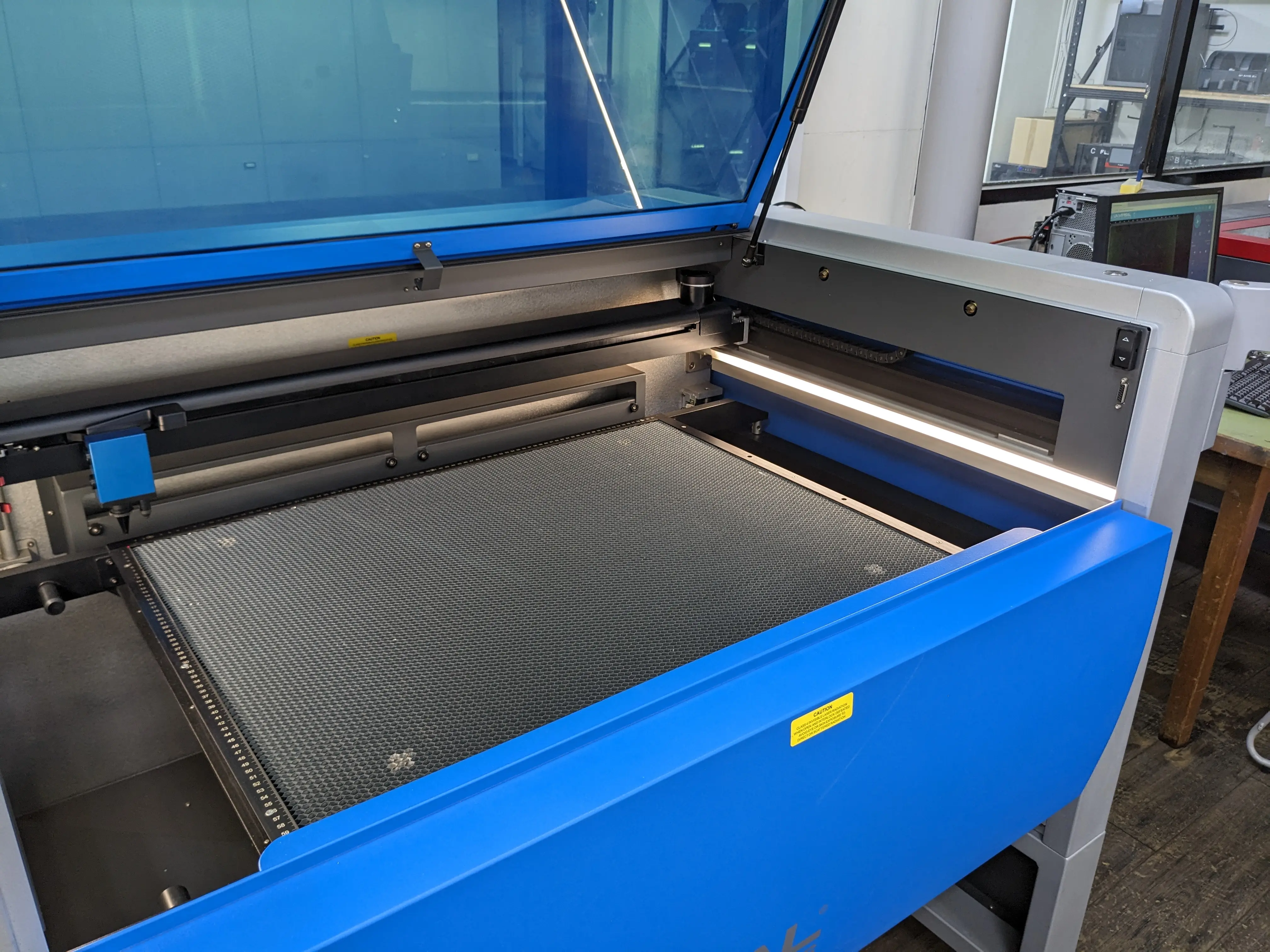 Hybrid mode is when both the fiber and CO2 lasers are used, this is only for very specific usage, and should not be attempted without authorization from the managing faculty, as it creates additional fire hazards.